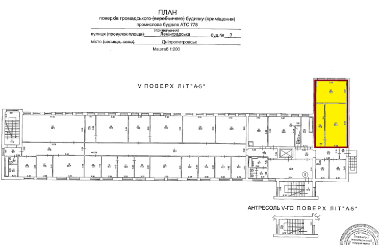 Дніпропетровська обл., м. Дніпро, вул.Князя Ярослава Мудрого, 3. Оренда – приміщення 5-го поверху площею 68,20 кв.м. (В)