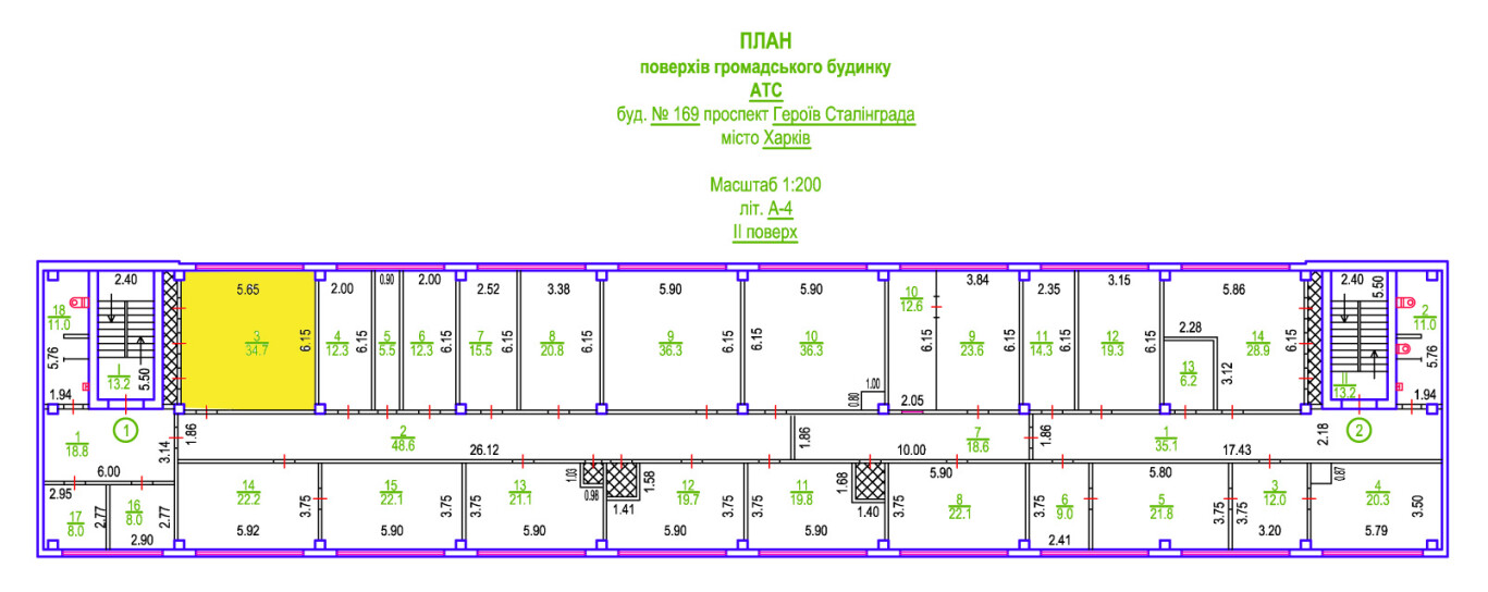 Харківська обл., м. Харків, просп. Героїв Сталінграду, 169. Оренда – приміщення 2-го поверху 34,7 кв.м.