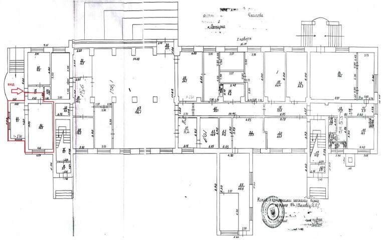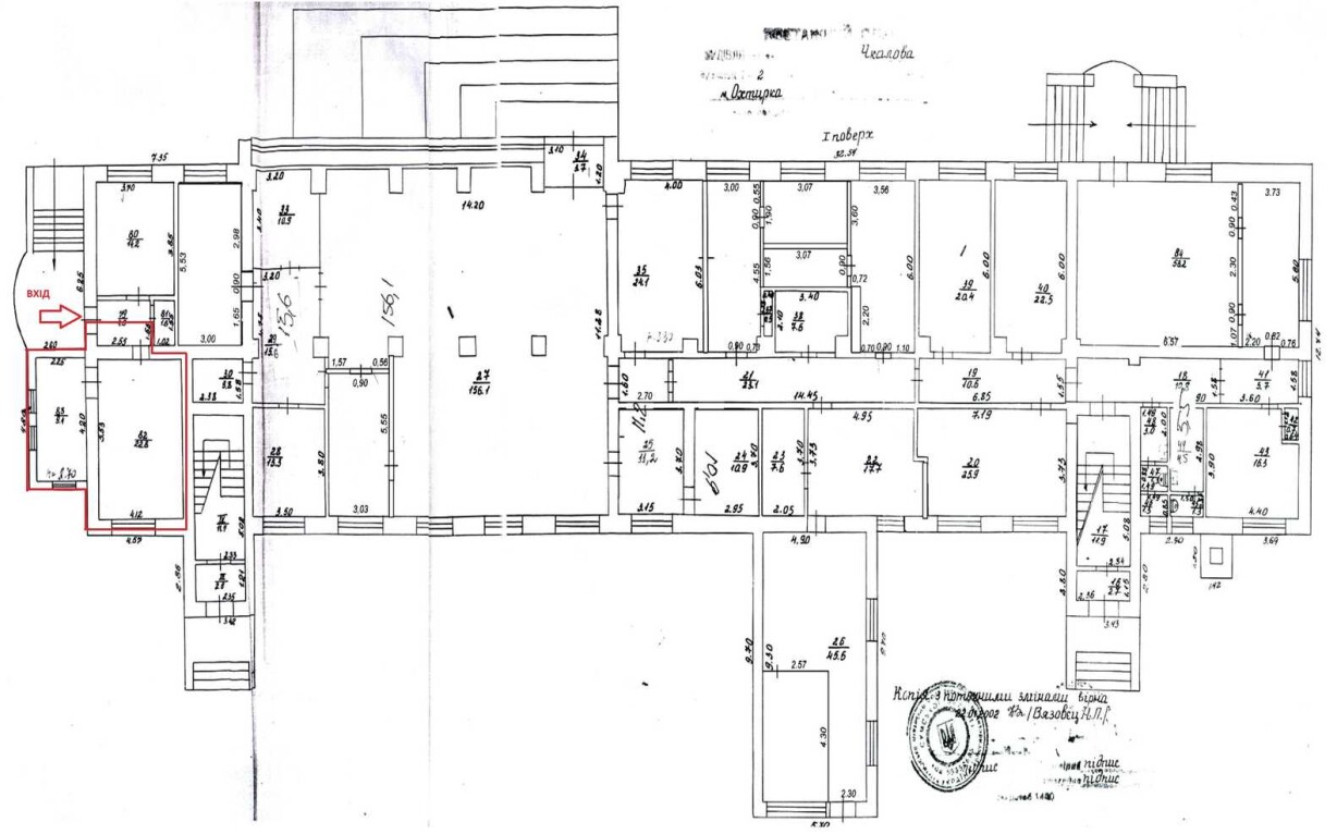 Пропонується до оренди офісні приміщення. Знаходиться на першому поверсі 3-поверхового будинку АТС в центральній частині міста. Поряд розвинена інфраструктура, високі автомобільний та пішохідний потоки. Вхід з фасаду будівлі. Приміщення потребують косметичного ремонту.