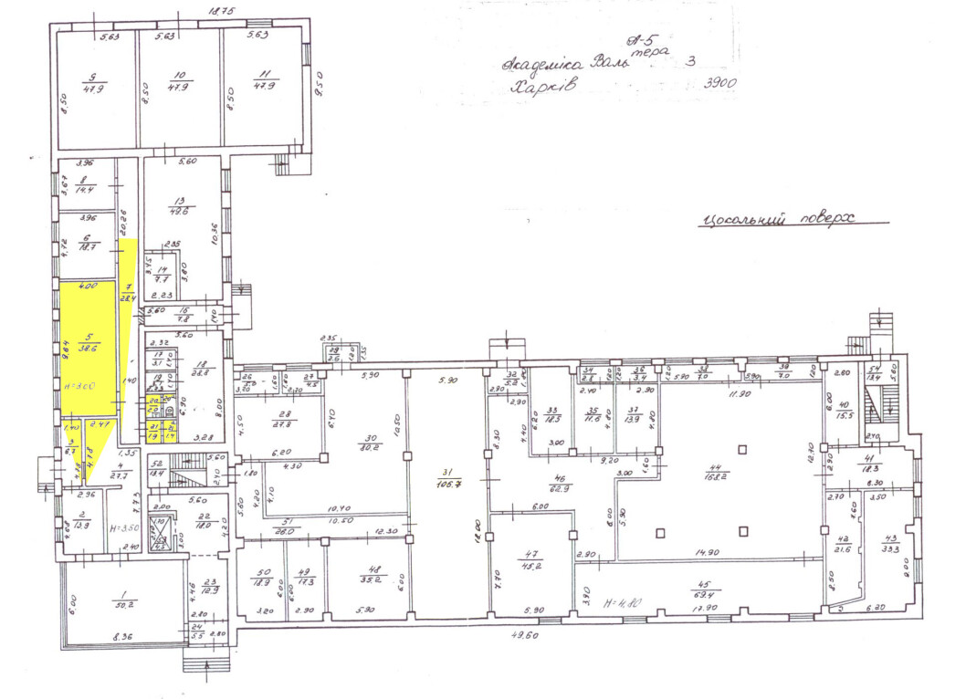 Харківська обл., м. Харків, вул. Ак. Вальтера, 3. Оренда – приміщення цокольного поверху площею 59,7 кв.м.