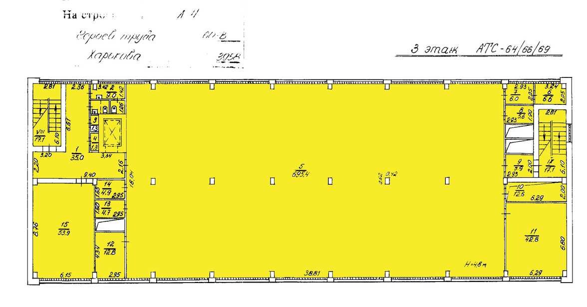 Харківська обл., м. Харків, вул. Героїв праці, 60-В. Оренда – приміщення 3-го поверху площею 932,0 кв.м.