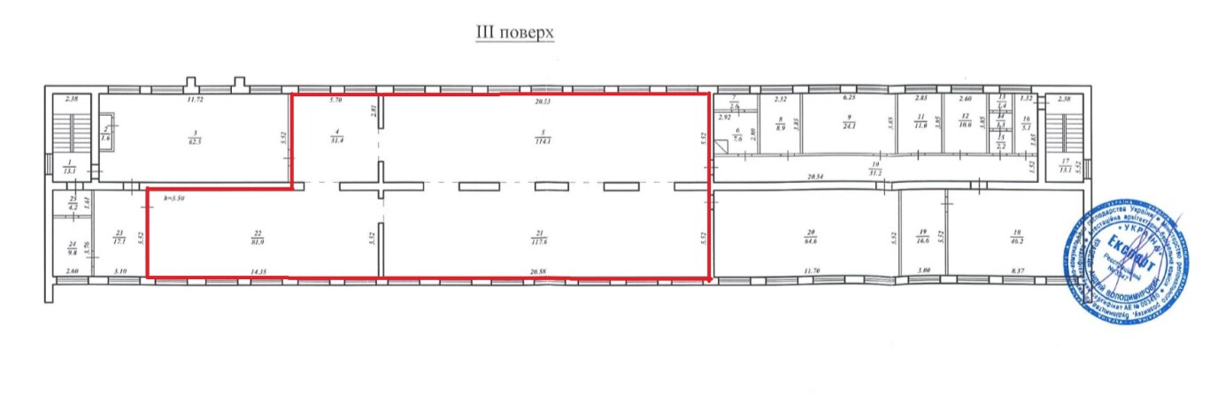 Сумська обл., м. Глухів, пл. Свободи, 2.Оренда – частина приміщення 3-го поверху площею 345,0 кв.м. (В)
