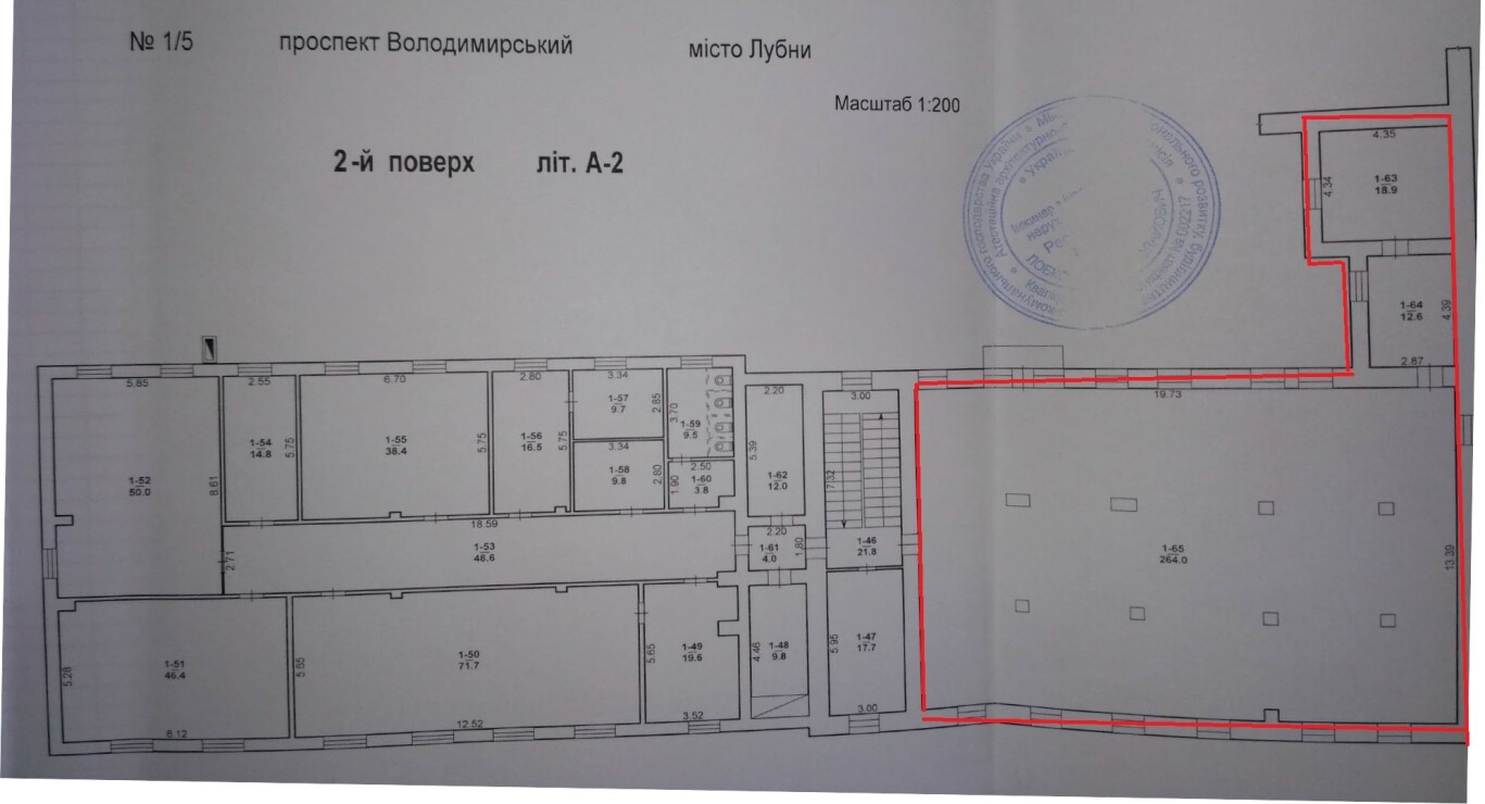 Полтавська обл., м. Лубни, проспект Володимирський, 1/5. Оренда – приміщення 2-го поверху площею 295,5 кв.м. (В)