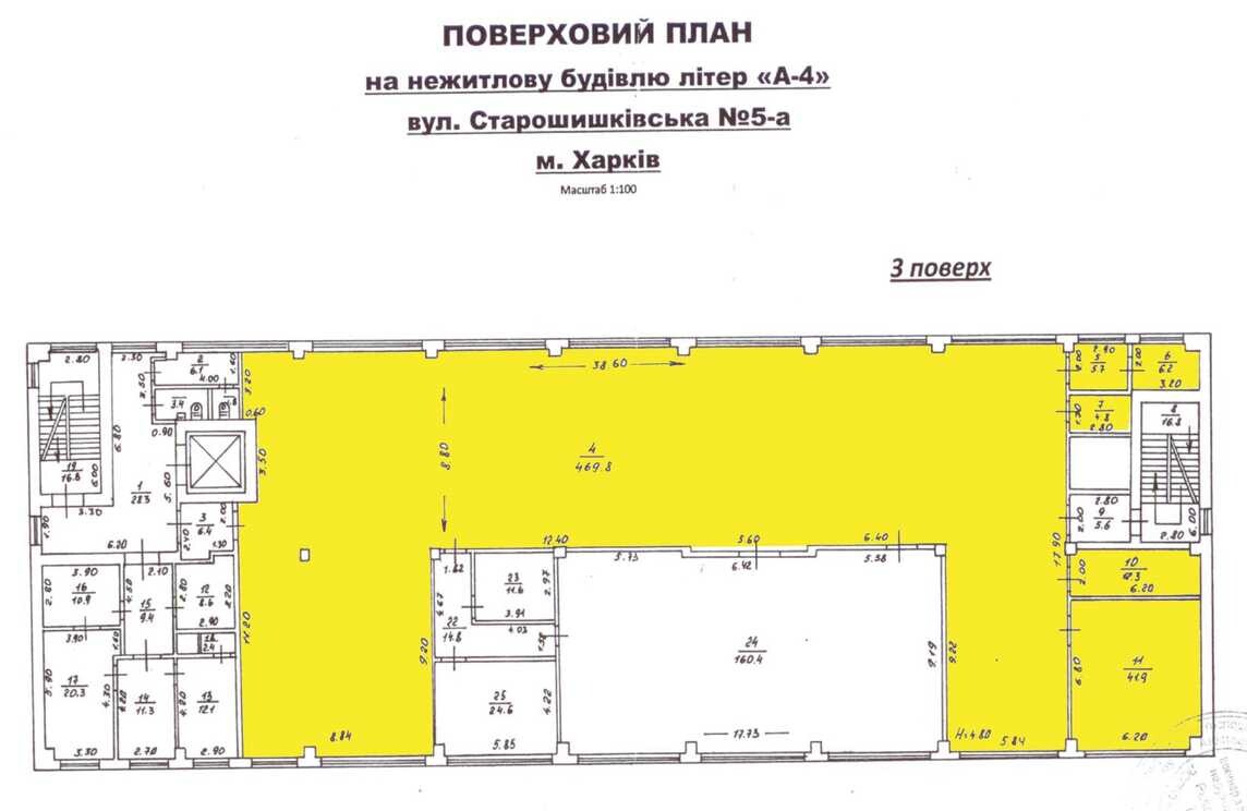 Харківська обл., м. Харків, вул. Старошишківська, 5а. Оренда – приміщення 3-го поверху площею 540,7 кв.м. (В)
