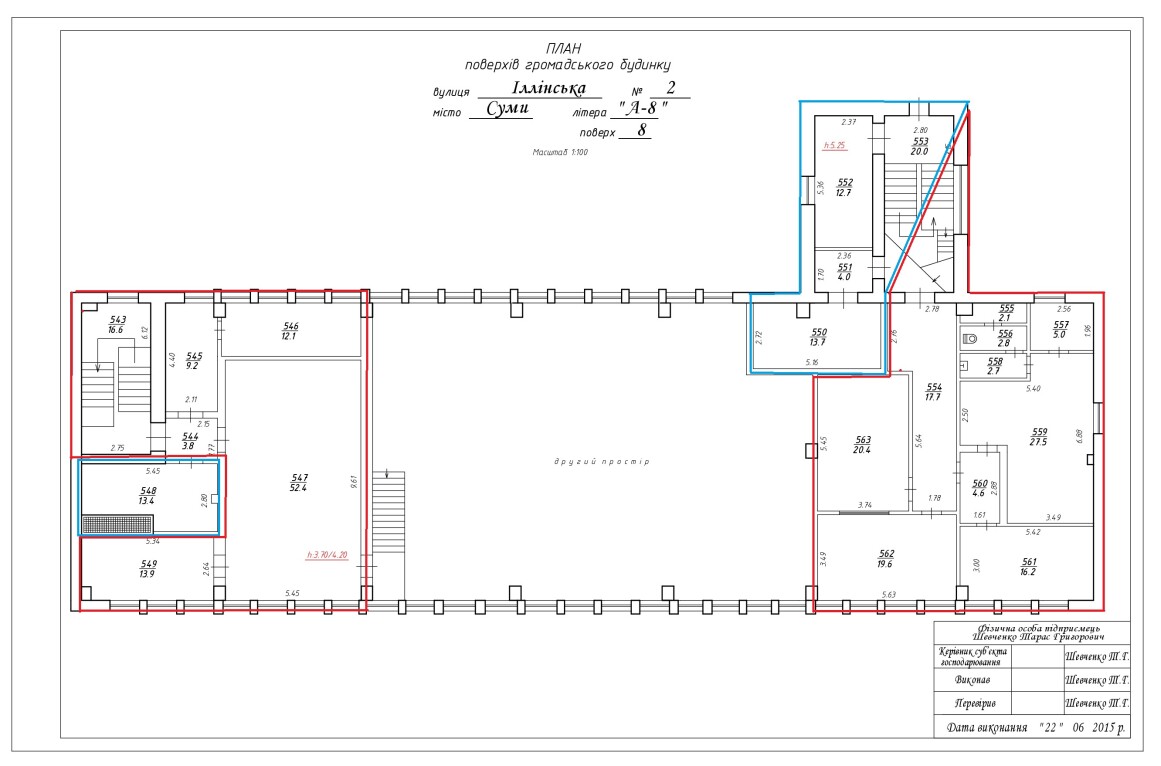 Сумська обл., м. Суми, вул. Іллінська, буд. 2. Оренда – приміщення 7-го та 8-го поверхів площею 708,40 кв.м. (В)