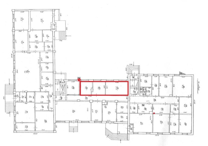 Пропонуються до оренди приміщення 1-го поверху площею 52,8 кв.м. Будівля знаходиться в центральній частині міста, розвинена інфраструктура, поряд торгові центри та магазини. Територія огороджена та частково впорядкована.