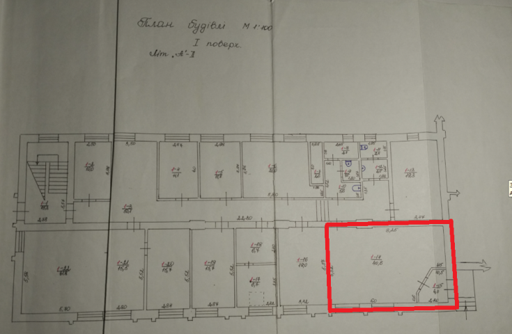 Пропонується до оренди частина будівлі з окремим входом, площею 44,6 кв.м.