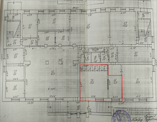 Полтавська обл., смт. Чорнухи, вул. Мележика, 1.Оренда – приміщення 1-го поверху площею 41,0 кв.м.(В)
