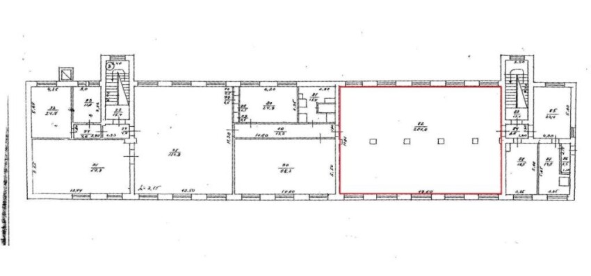 Пропонується до оренди приміщення на третьому поверсі трьоповерхової будівлі площею 267,7 кв.м. Будівля знаходиться в центральній частині міста, розвинена інфраструктура, високі автомобільний та пішохідний потоки. Характеристики • кількість поверхів – 3 • загальна площа –1775,00 кв.м • площа запропонована до оренди – 267,7 кв.м • земельна ділянка – 0,3455 га (договір оренди)