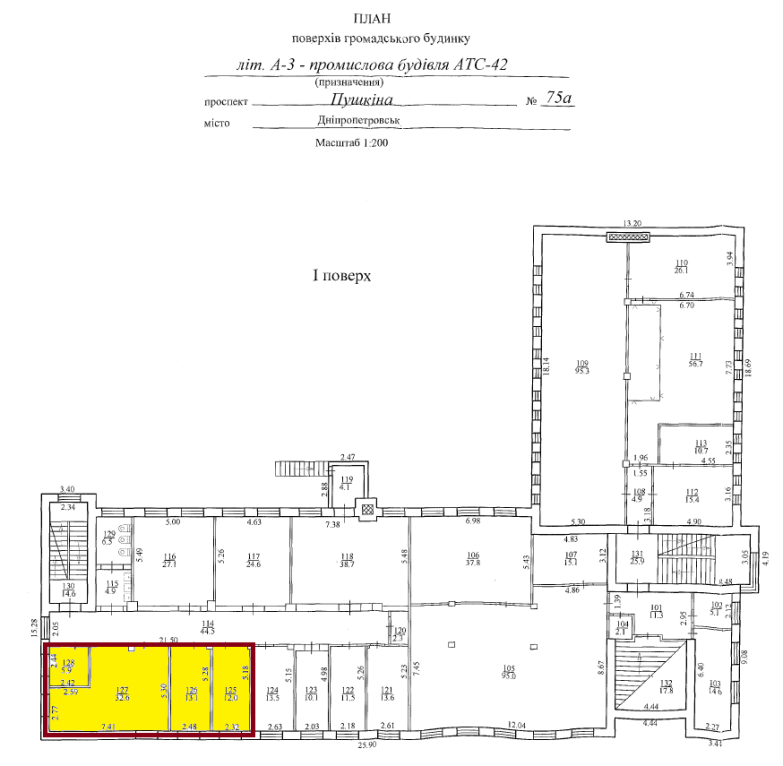 Дніпропетровська обл., м. Дніпро, пр. Пушкіна, 75 а. Оренда – приміщення 1-го поверху площею 63,60 кв.м.(П)