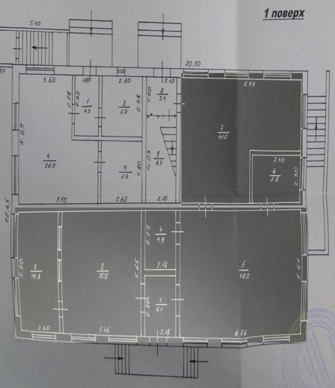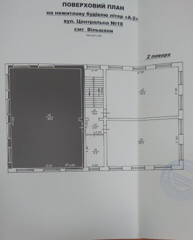 Харківська обл., Харківський р-н, смт. Вільшани, вул. Центральна, 18. Оренда – окремі приміщення 1-го та 2-го поверху площею 251,10 кв.м. (В)