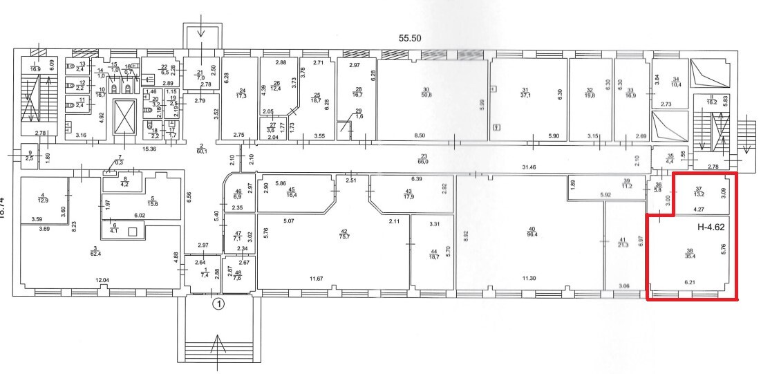 До оренди пропонуються приміщення 1-го поверху площею 65,60 м².