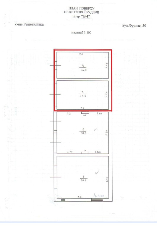 Полтавська обл., смт. Семенівка, вул. Воїнів Інтернаціоналістів, буд. 12/9. Оренда – приміщення 2-го поверху 30,7 кв.м.(В)