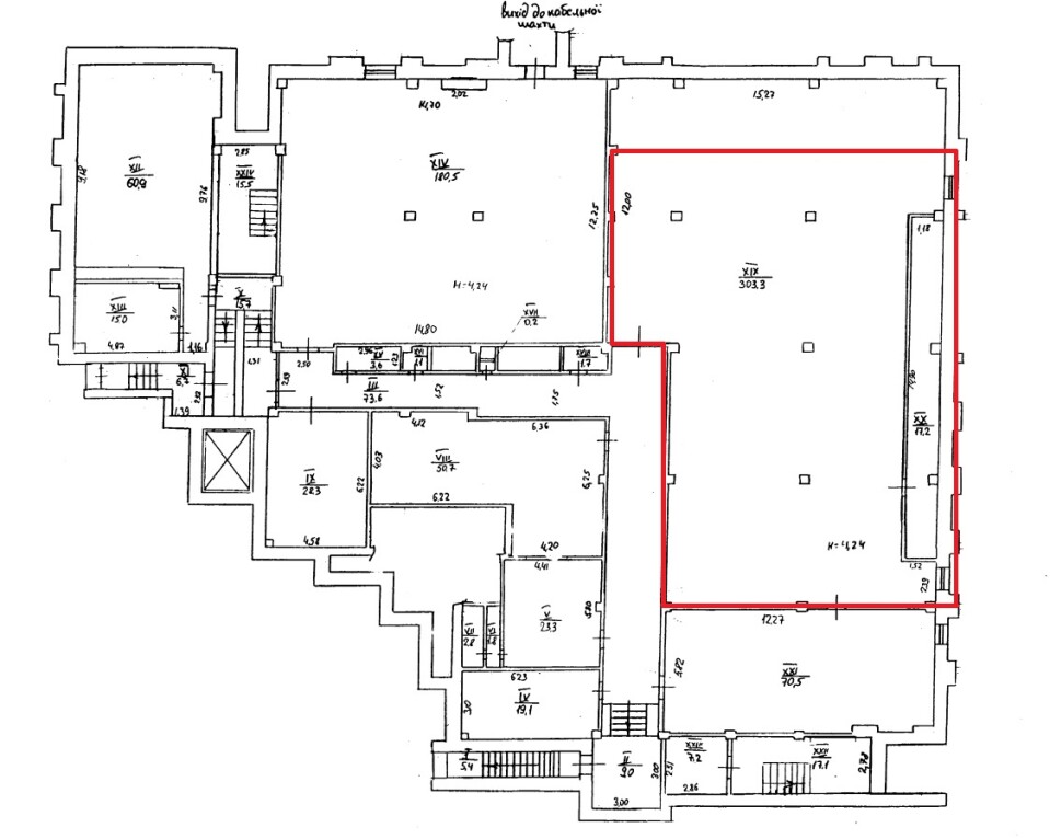 Пропонуються до оренди приміщення підвалу, площею 274,70 м2.