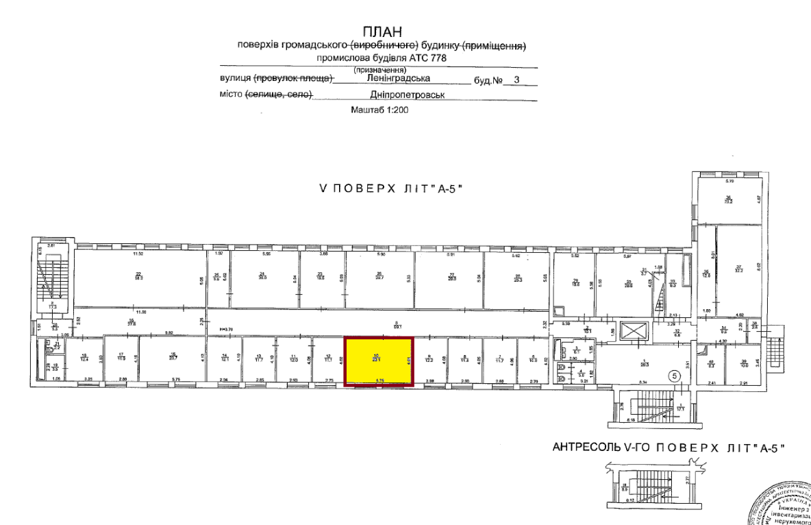 Дніпропетровська обл., м. Дніпро, вул. Князя Ярослава Мудрого, 3. Оренда – приміщення 5-го поверху площею 23,10 кв.м. (В)