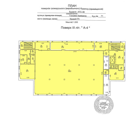Дніпропетровська обл., м. Кривий Ріг, вул. Головка Адмірала, 71. Оренда – приміщення 3-го поверху, площею 777,3 кв.м. (В)