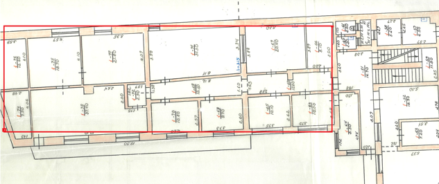Пропонуються до оренди приміщення 2-го поверху площею 226,80 кв.м. Будівля знаходиться в центральній частині міста, розвинена інфраструктура, високі автомобільний та пішохідний потоки. Вхід в приміщення можливий через спільний вхід з Укрпоштою або через внутрішній двір. Стан приміщення потребує задовільний.