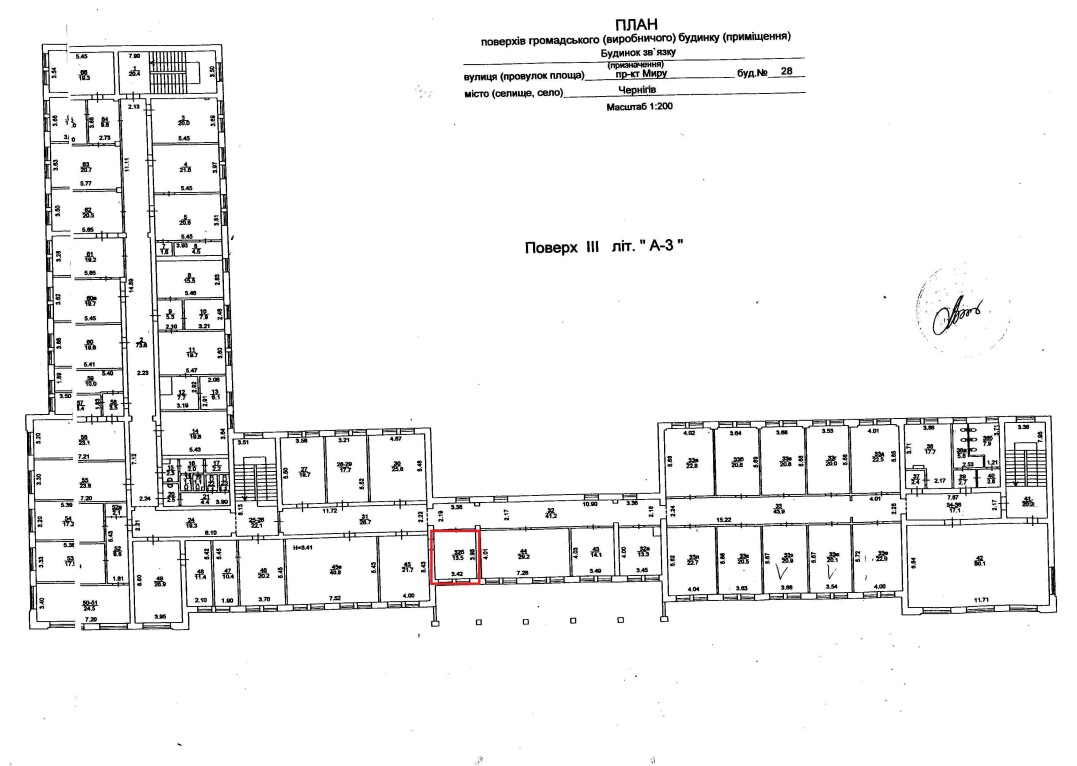 Чернігівська обл., м. Чернігів, проспект Миру, 28. Оренда – приміщення 3 поверху площею 33,5 кв.м.(В)