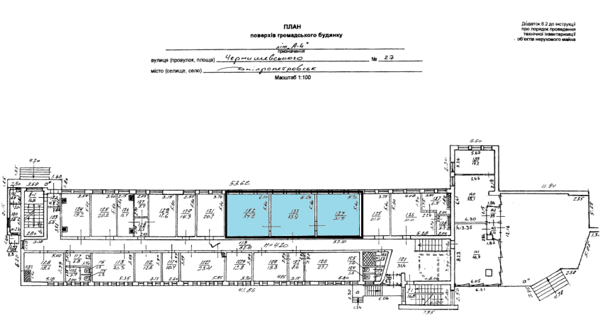 Дніпропетровська обл., м. Дніпро, вул. Чернишевського, 27. Оренда – приміщення 1-го поверху площею 100,00 кв.м. (В)