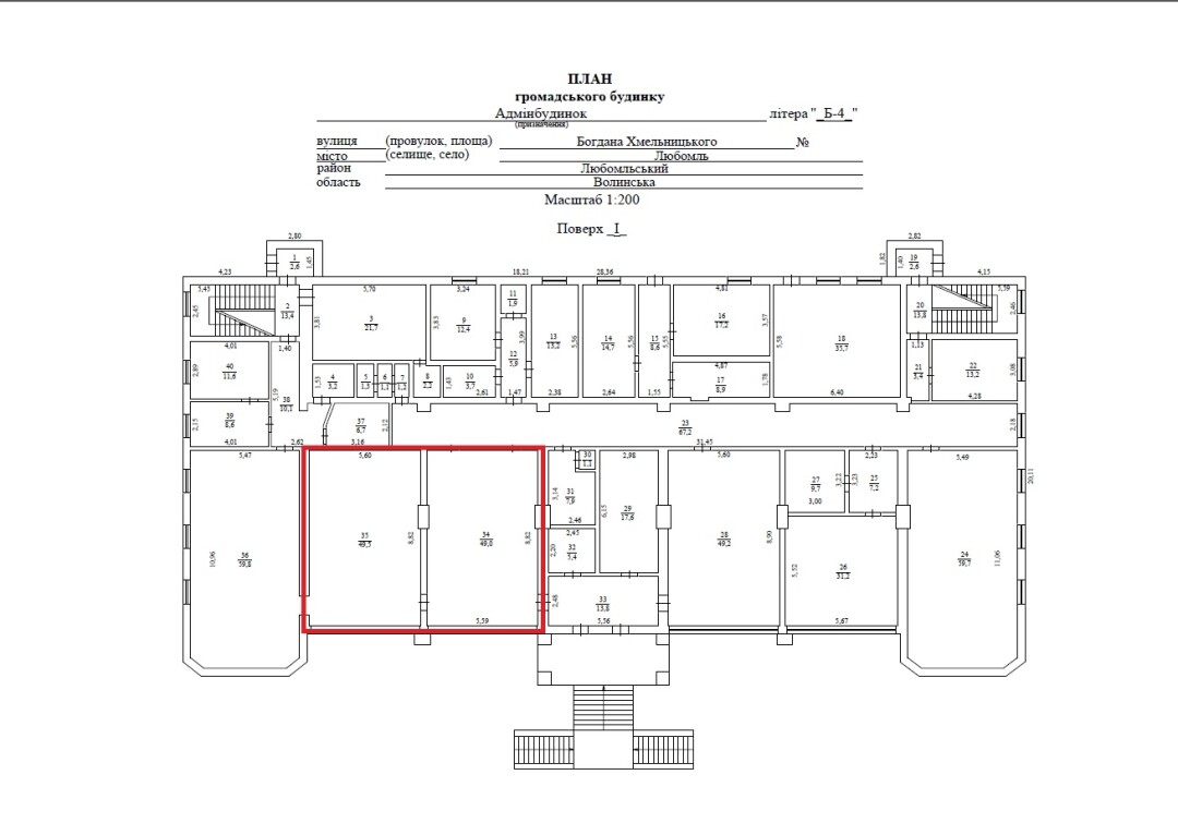 Волинська обл., м. Любомль, вул. Б.Хмельницького, 2. Оренда – приміщення 1-го поверху адмінбудівлі площею 98,50 кв.м. (В)