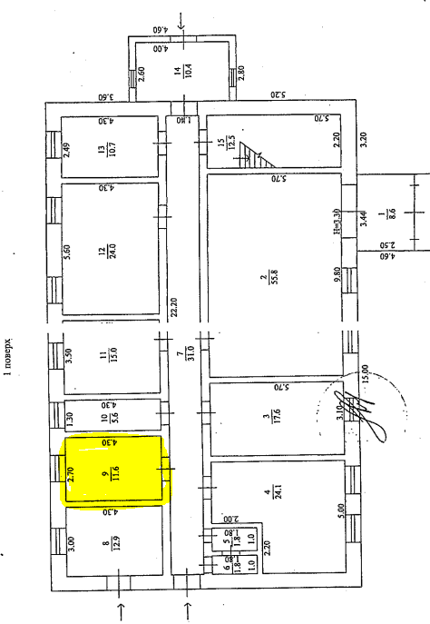 Пропонується до оренди приміщення 1-го поверху площею 11,6 кв.м.