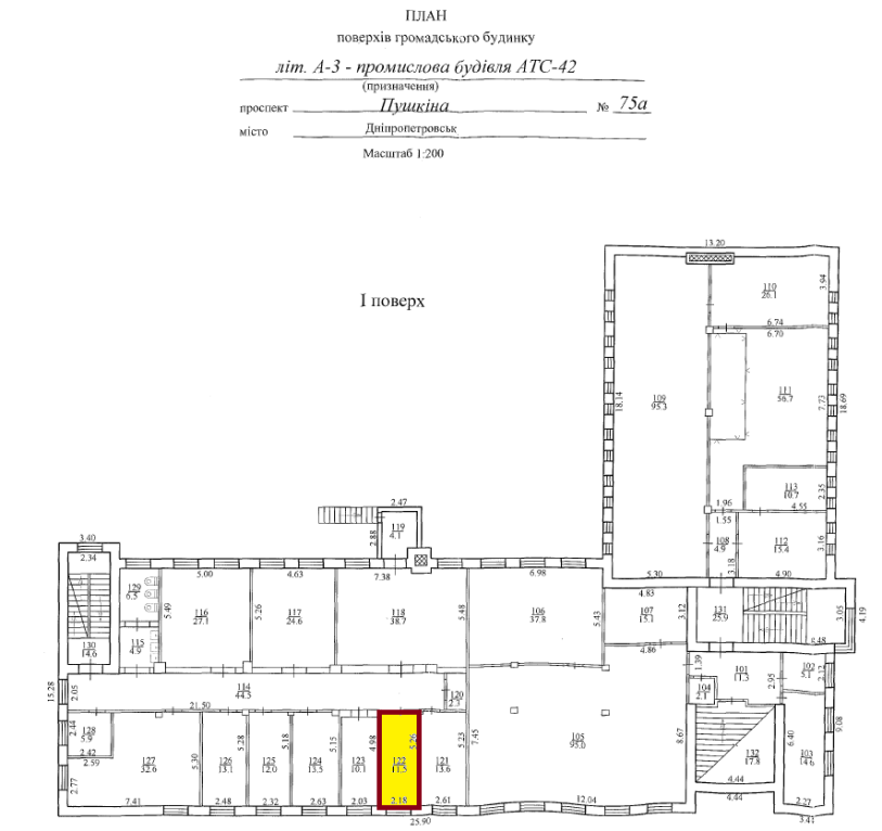 Дніпропетровська обл., м. Дніпро, пр. Пушкіна, 75а. Оренда – приміщення 1-го поверху площею 11,5 кв.м. (В)