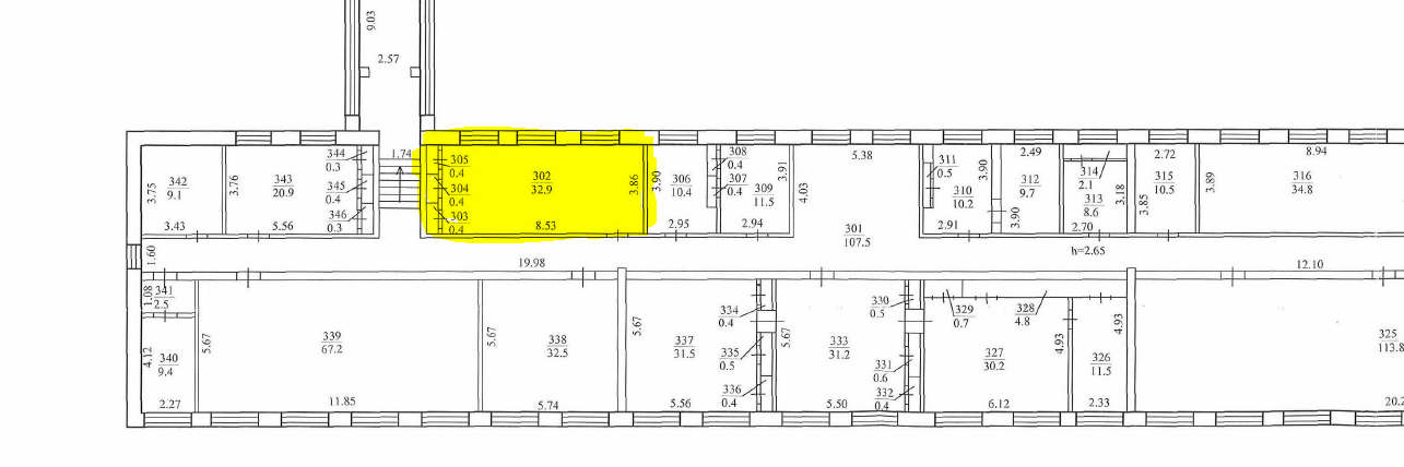Пропонується до оренди приміщення 3-го поверху площею 34,1 кв.м.