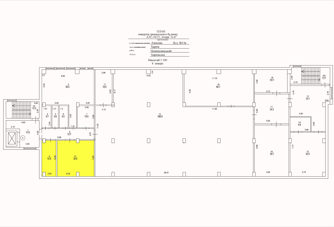 Харківська обл., м. Харків, вул. Амосова, 13в. Оренда – приміщення 4-го поверху площею 52,7 кв.м (П)