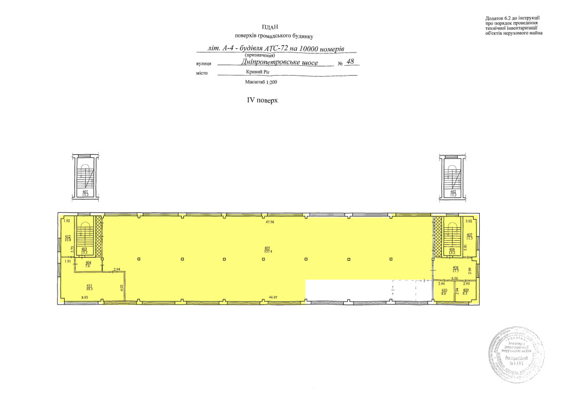 Дніпропетровська обл., м. Кривий Ріг, вул. Дніпропетровське шосе, 48; Оренда – приміщення 4-го поверху, площею 640,0 кв.м. (В)