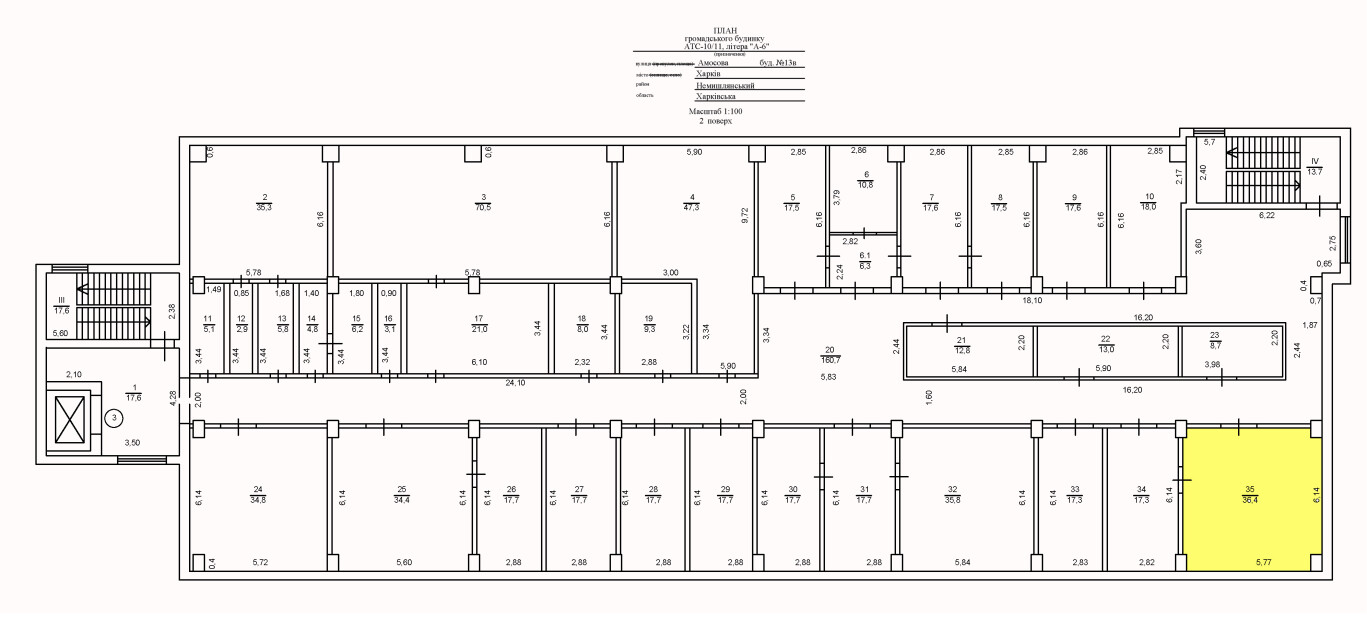 м. Харків, вул. Амосова,13-в. Оренда - приміщення 2-го поверху площею 36,4 кв.м (В)