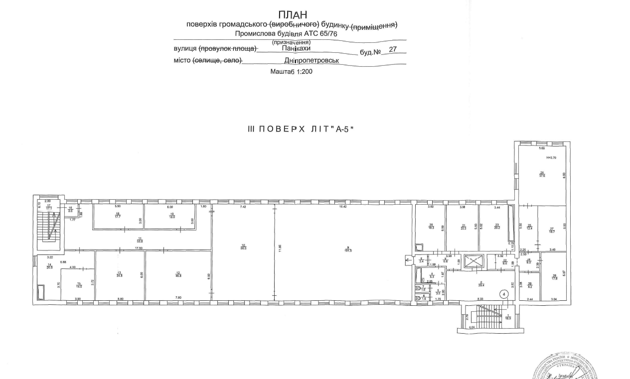 Дніпропетровська обл., м. Дніпро, вул. Панікахи, 27. Оренда – приміщення 3-го поверху площею 742,0 кв.м. (В)