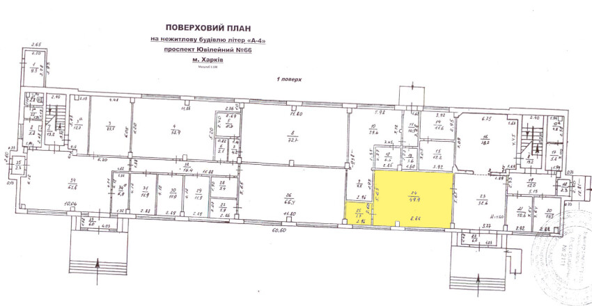 м.Харків, пр-т Ювілейний, 66 ; Оренда – приміщення 1-го поверху площею 57,6 кв.м (В)