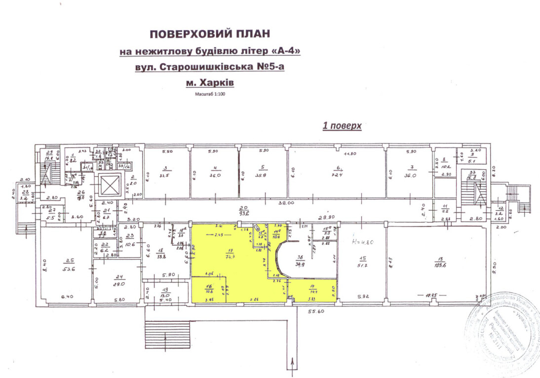 м. Харків, вул.Старошишківська,5а. Оренда – пприміщення першого поверху площею 114,10 кв.м (П)