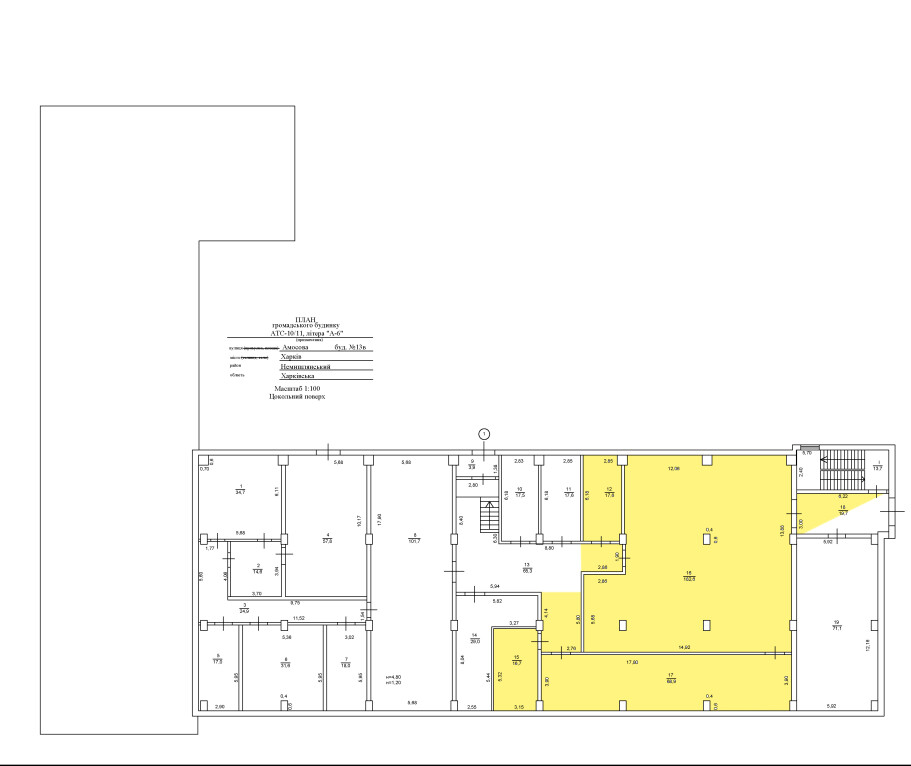 м.Харків, вул. Амосова,13 в. Оренда – приміщення цокольного поверху площею 312,51 кв.м (П)
