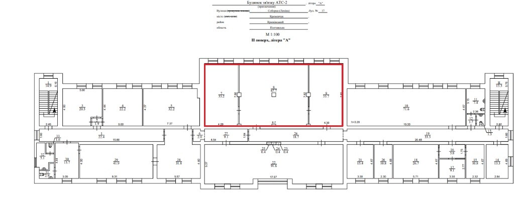 Полтавська обл., Кременчуцький р-н, м. Кременчук, вулиця Соборна, 17. Оренда – приміщення 2-го поверху площею 134,60 кв.м. (В)