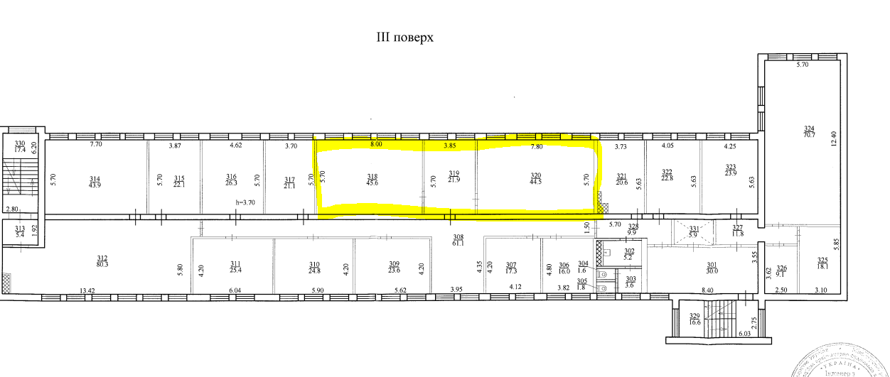 Дніпропетровська обл., м. Кам’янське, просп. Героїв АТО, 1. Оренда – приміщення 3-го поверху загальною площею 112,0 кв.м (В)
