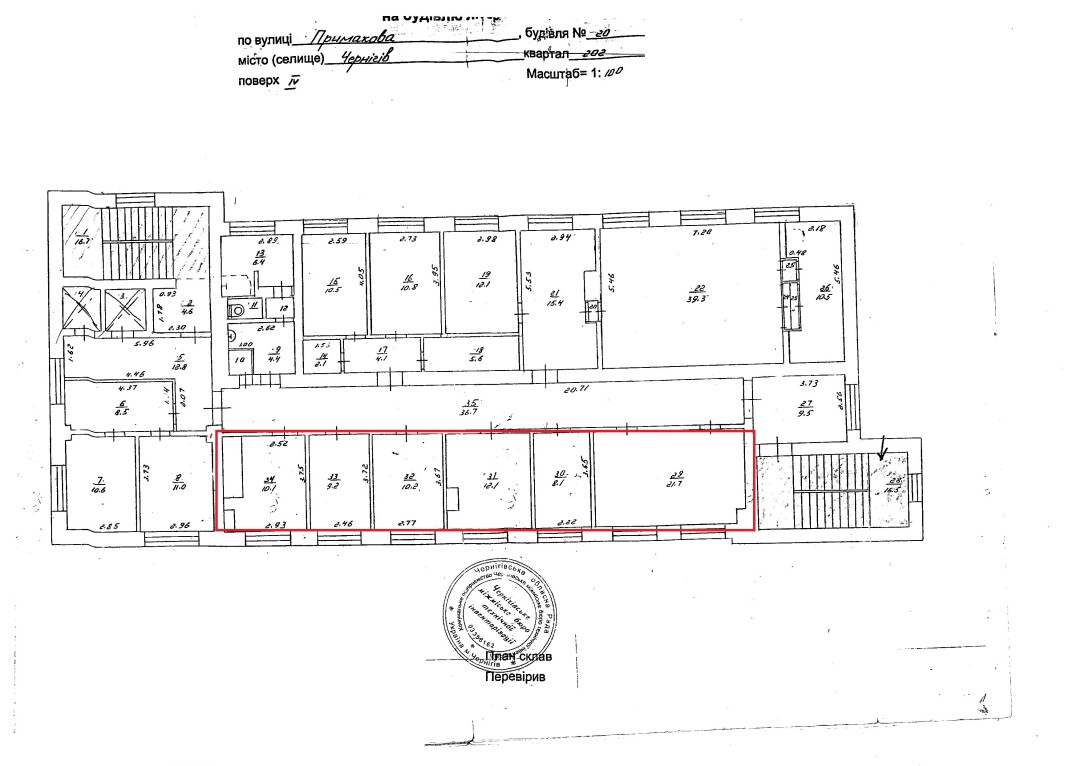 м. Чернігів, вул. Ринкова, 20. Оренда – приміщення 4-го поверху площею 71,40 кв. м (В)
