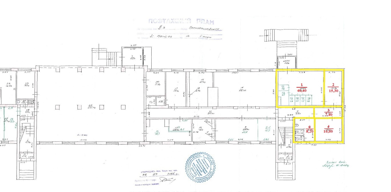 Дніпропетровська обл, м. Першотравенськ, вул. Кобзаря, 15. Оренда – приміщення 1-го поверху площею 87,90 кв.м (В)