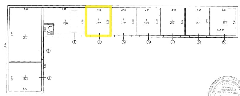 Площа запропонована до оренди – 26,90 кв.м