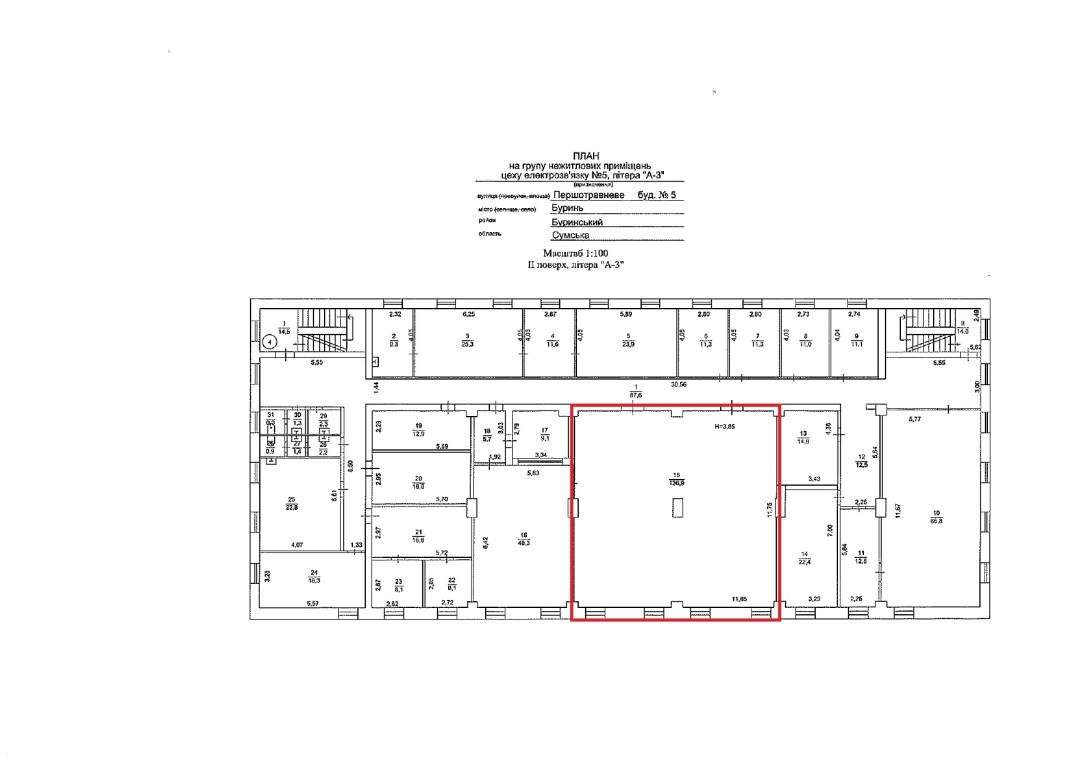Сумська область, Конотопський р-н, м. Буринь, вул. Першотравнева, буд. 5; Оренда – приміщення 2-го поверху площею 136,90 кв. м. (В)