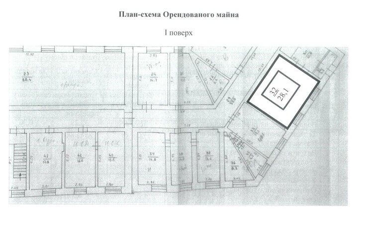 Пропонується до оренди приміщення 1-го поверху площею 28,10кв.м. Приміщення розташоване на 1 поверсі 2-х поверхової адміністративної будівлі, яка знаходиться в центрі м. Решетилівка