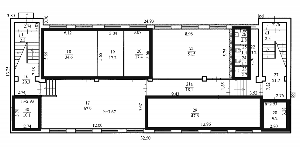 Дніпропетровська обл., м. Кривий Ріг, вул. Калантая, 12. Оренда – приміщення підвалу, 1-го та 2-го поверхів площею 520,50 кв.м. (В)