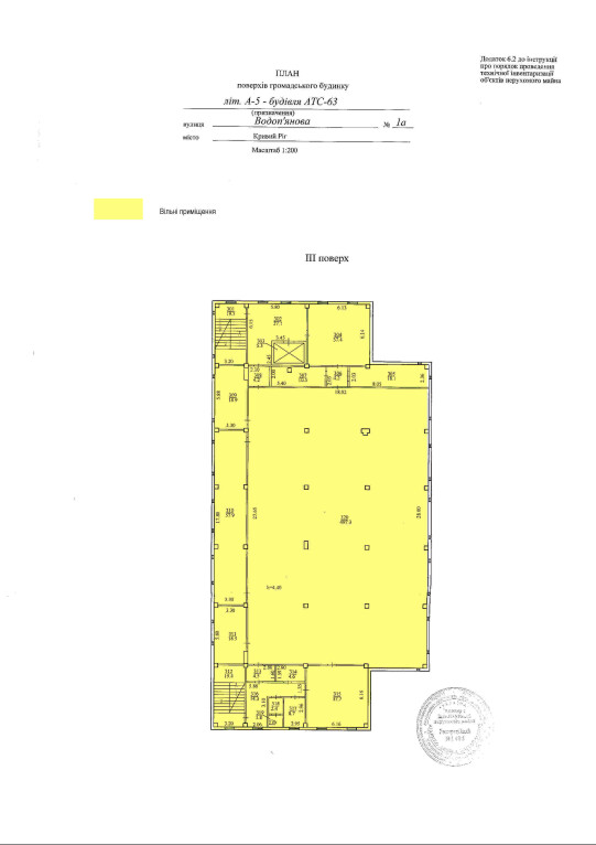Дніпропетровська обл., м. Кривий Ріг, вул. Водоп`янова, 1а; Оренда – приміщення 3-го поверху, площею 812,3 кв.м. (В)