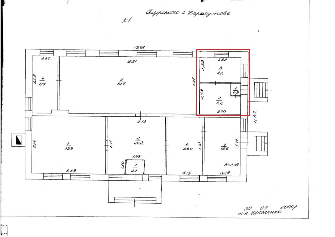 Сумська обл., Конотопський р-н, с. Карабутове, вул. Свідерського, 2. Оренда – нежитлове приміщення площею 18,30 кв.м. (В)