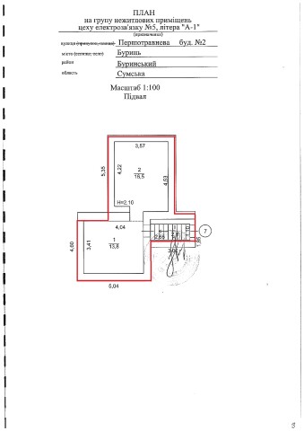 Сумська область, Конотопський р-н, м. Буринь, вул. Першотравнева, буд. 2. Оренда – нежитлові будівлі площею 356,20 кв. м. (В)