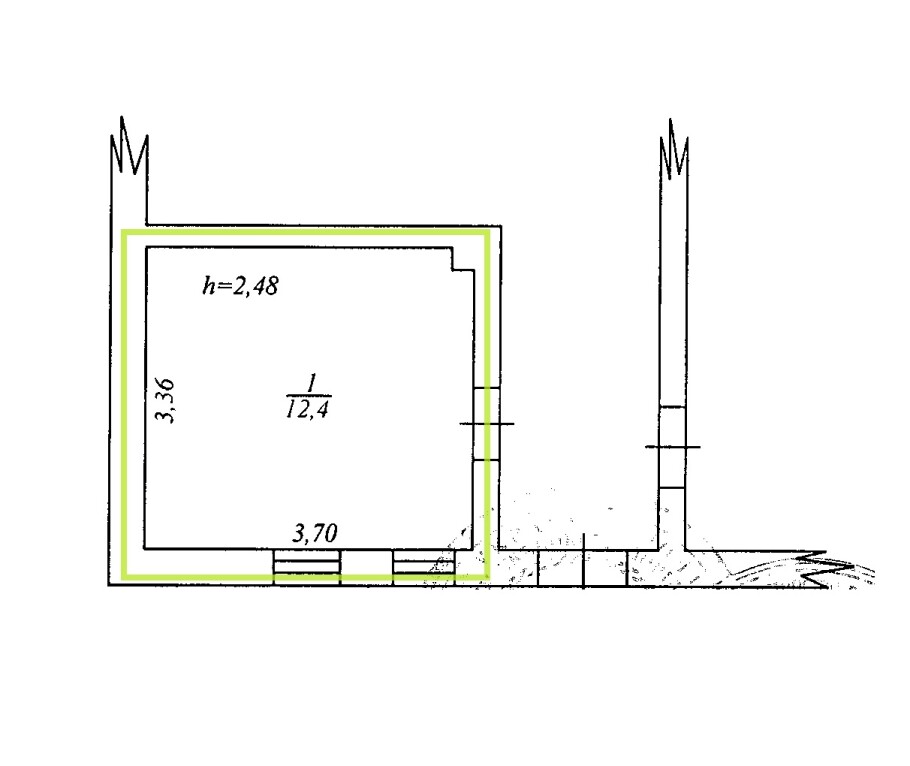 Пропонуються до оренди приміщення на 1-му поверху нежитлової будівлі площею 12,4 кв.м.