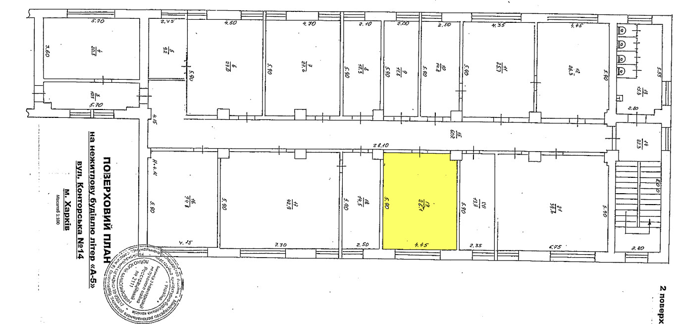 м.Харків, вул.Конторська,14 ; Оренда–приміщення 2-го поверху площею 26,1 кв.м (В)
