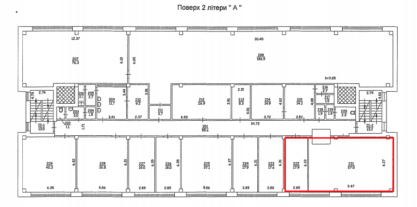 Пропонується до оренди приміщення 2-го поверху площею 74,90 кв.м