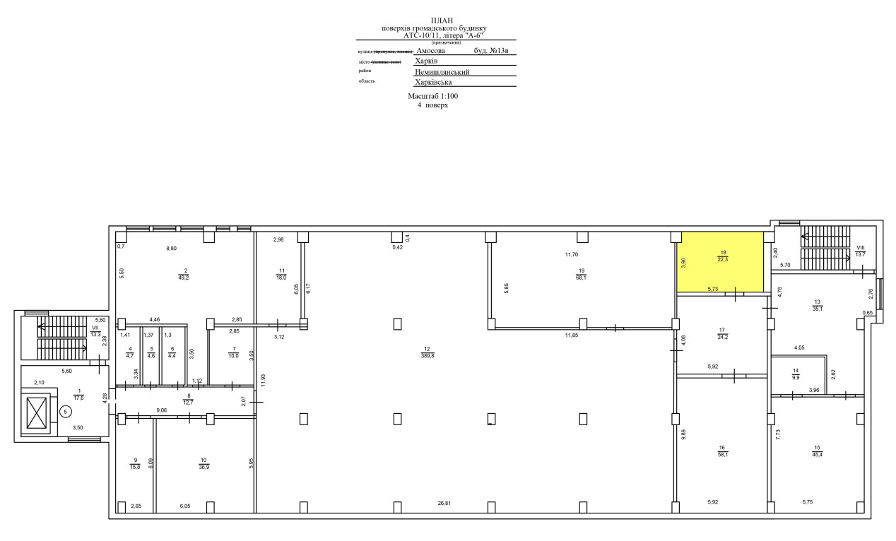 м.Харків, вул. Амосова,13-В ; Оренда – приміщення четвертого поверху площею 22,3 кв.м. (П)
