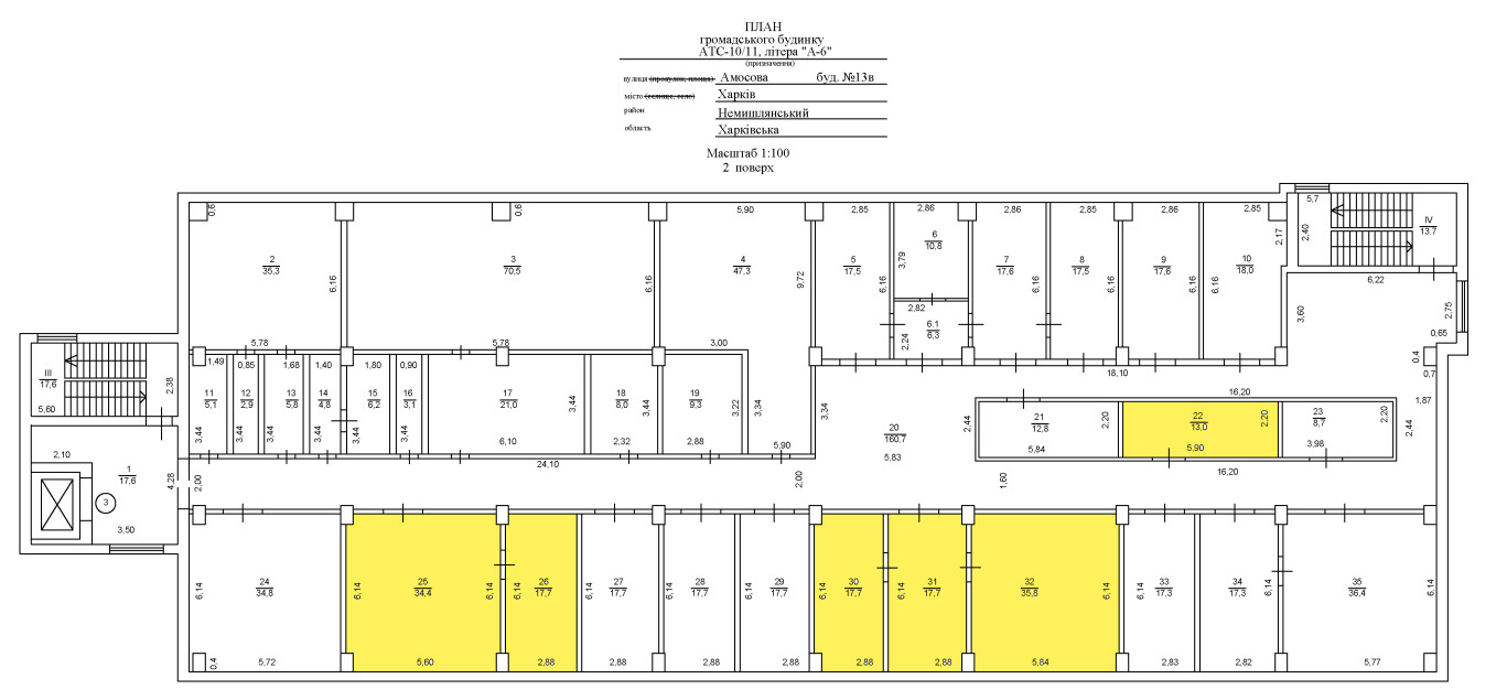 м.Харків, вул. Амосова,13 в. Оренда – приміщення 2-го поверху площею 136,3 кв.м (В)
